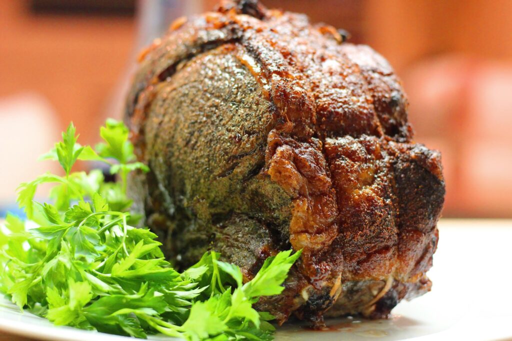 This year, for our “pre-Christmas” feast, we chose Prime Rib of Beef. I’m delighted we did, even though I’m determined to serve turkey on Christmas Day itself. Prime rib is irresistible, especially when it’s on sale, and my recipe, which I first discovered in a James Beard cookbook years ago, has never failed me. The instructions are now cast in stone, and the results are always superb. A more budget friendly cut to consider would be a sirloin tip roast which also appears on many Sunday Roast menus in the U.K. and is prepared the same way as the Prime Rib roast.