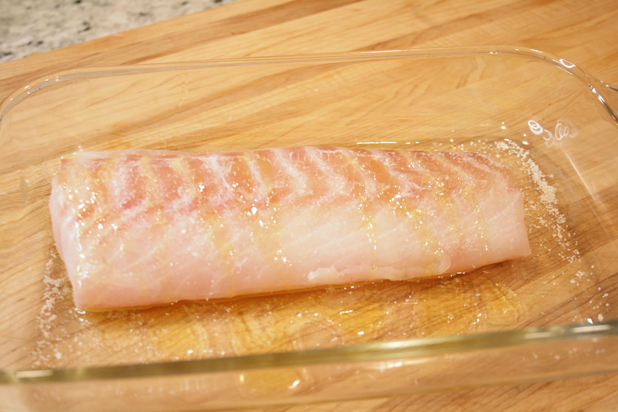 - Place 1-1/2 lb cod in an oven proof dish, drizzle with olive oil on both sides. Season both sides with kosher salt and freshly ground black pepper.
