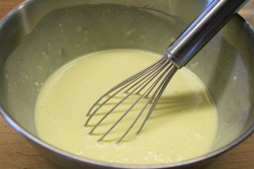 - Whisk 3 large egg yolks, 1 clove garlic, 3/4 cup heavy cream, 1/4 cup sour cream and 5 tbsp unsalted butter in a large bowl. Season generously with kosher salt and black pepper.