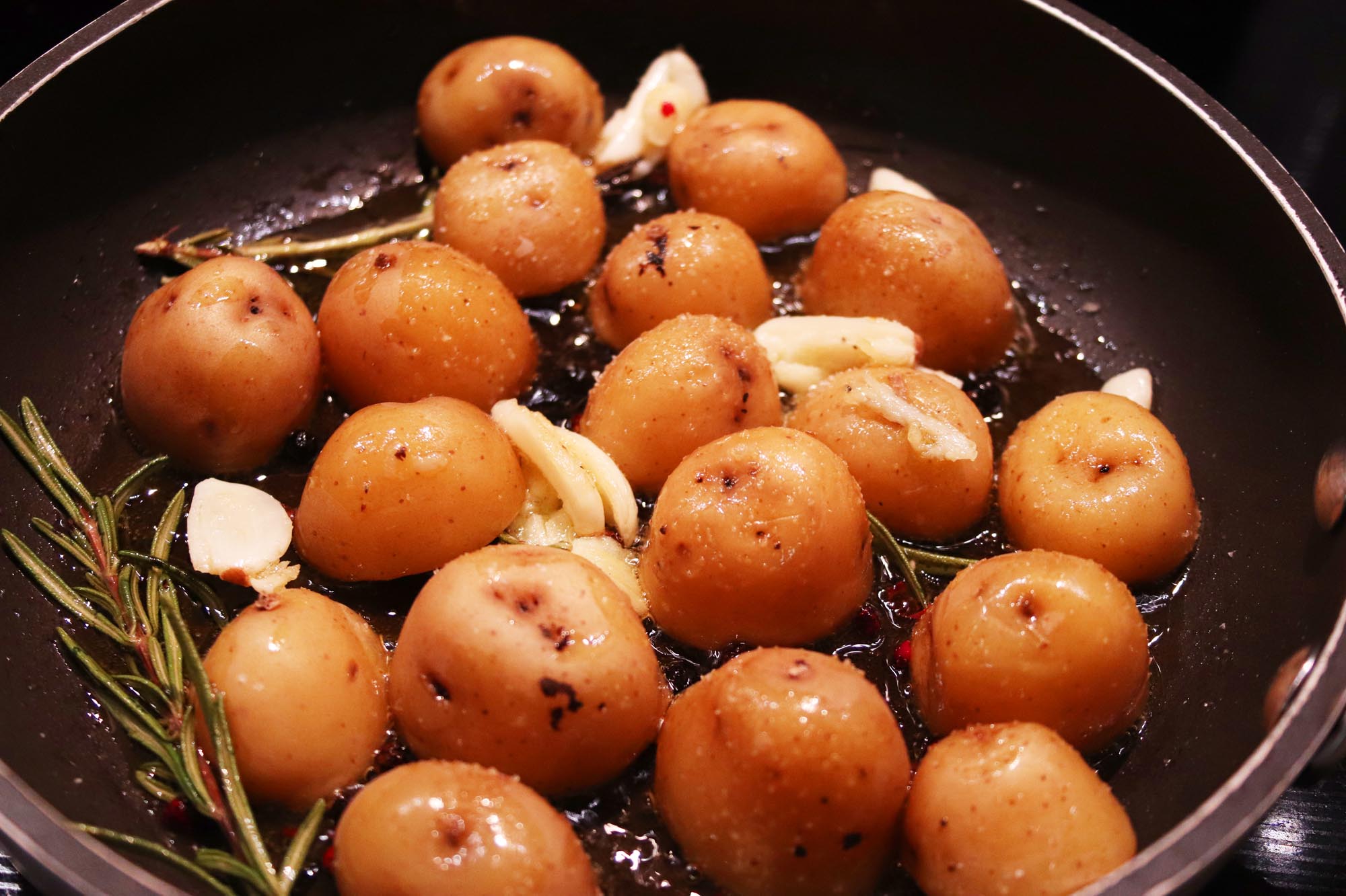 What I love most is how easily you can dress them up. This recipe includes a sprinkle of rosemary and a few smashed garlic cloves which instantly turn them into something fragrant and delicious. Add a handful of whole black peppercorns and you get that subtle, unexpected pop of heat that makes the whole pan feel a little more elevated. It’s the kind of small twist that makes a simple side dish feel intentional.