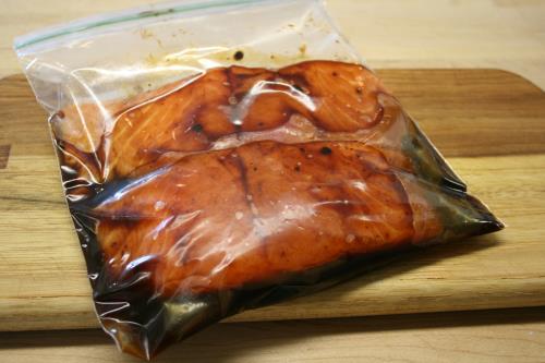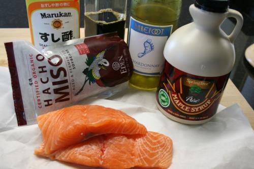 - Pour about 1/3 of the cooled Miso Maple Marinade into a resealable plastic bag. Season 2 slices center cut skinless salmon filets with kosher salt and freshly ground black pepper and add the salmon to the marinade. Refrigerate for at least two hours and up to overnight. Reserve remaining marinade.
