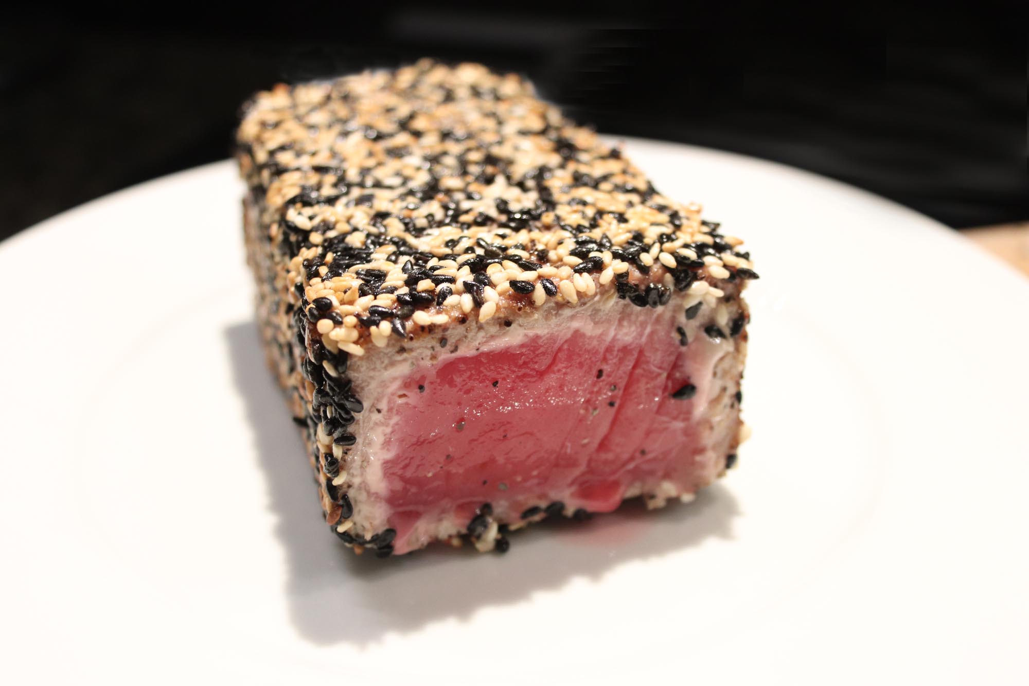 You will lose a little when trimming the tuna for searing. I suggest freezing these cut off pieces and using them to prepare a tuna tartare using my recipe for Wasabi Salmon Tartare. Absolutely delicious!