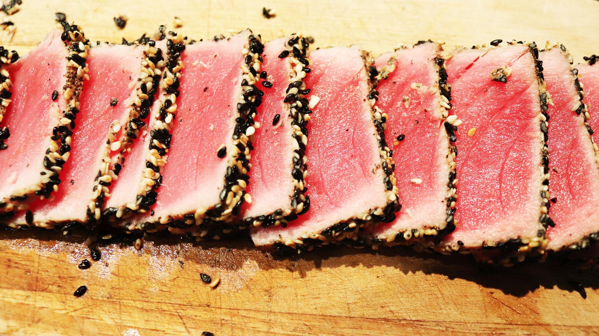 - Slice tuna into 1/8" thick slices.